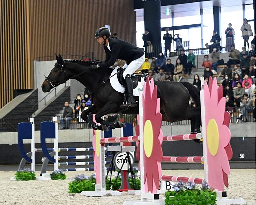 【Equitation Challenge Class】(110cm障害飛越)は、スピードや障害落下数を競う通常の障害飛越競技とは異なり、ライダーの姿勢、バランス、馬との調和といった「技術の正確さと美しさ」が評価の対象となる競技です。彼にとって馬事公苑で競技するのは初めてで、110cmクラスの経験も浅いことから、期待と不安が交錯しましたが、終始落ち着きを保って、ライダーの指示にも忠実に反応しながら走行を終えることができました。結果は14位と上位に食い込むことはできなかったものの、集中力や対応力の向上、ライダーとの信頼関係の強化を感じさせる、今後に向けてとても意義のある一戦でした。