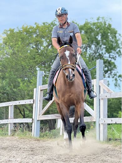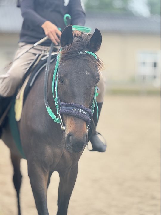 「はい、キャロットクラブからお譲りいただいた馬の中でグルーヴィットが最も大きく変わりました。こちらに来た当初から抱えていた慢性的な背中の痛みが解消し、騎乗中に見せていた苦痛のサインが完全に消えたんです。これは、彼本来の能力を引き出すための土台ができたことを意味しています。だいぶ涼しくなってきたことで、後肢に重点を置いた訓練の機会を増やすことができており、特に角馬場で動かしていると、彼の持ち味であるしっかりと踏み込んだ、縦方向の弾みがある動きが顕著に出てくるようになったんです。これはエアグルーヴ系出身の彼が持つ血統のポテンシャルであり、つまりは本来持っている能力を発揮できる状態に近づいているサインだと感じています」