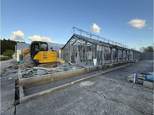 「被災からの復興を目指してきた珠洲ホースパークですが、ようやく本格的な工事日程が定まり、生まれ変わるための確かな一歩を踏み出すことができました。応援してくださった皆さまには、この場をお借りして改めて心より感謝申し上げます。現状ですが、事務所内装や外装と建物の主要部分の修繕は完了し、残るは設備の復旧が残るのみです。ご来場いただく皆さまに安心して当施設をご利用いただけるように水回りの改修を進めており、まもなく利用可能となる見込みです。ここが整えば、キャロット会員様の訪問だけでなく、依頼が寄せられている課外学習や企業の研修なども、より整った環境下で集中して行えるようになるでしょう。そして、復興のハイライトとも言える大工事がいよいよ始まりました。これまで厩舎として使用していた農業用ハウスを取り壊し、その跡地に新しく厩舎を建設する作業に入りました。新しい放牧地の造成も計画されており、新厩舎が完成した暁には、馬たちにより安全で快適な環境を提供できるようになります。来年度中には生まれ変わった珠洲ホースパークを皆さまにお楽しみいただけることになりそうです。ホースパークのスタッフとともにこれまでに得た教訓を活かし、より引退馬の価値が上がる活動を展開してまいりたく思います。引き続き、変わらぬご支援を賜りますよう、お願い申し上げます」